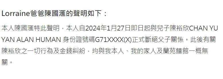 古巨基的小舅子陳裕欣因沉迷賭博而欠下巨額債務(wù),累計(jì)高達(dá)300萬(wàn)港元。這一突如其來(lái)的風(fēng)波不僅給陳裕欣的個(gè)人生活帶來(lái)了災(zāi)難性的打擊,更是給他的家人,特別是他年邁的父母帶來(lái)了深深的痛苦和困擾。在多次嘗試解決債務(wù)危機(jī)無(wú)果后,陳裕欣的父親陳國(guó)匯做出了一個(gè)艱難的決定——公開宣布與兒子斷絕父子關(guān)系。