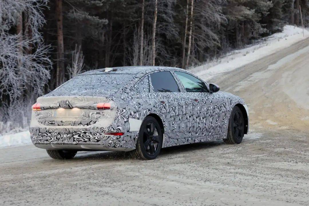 A6L e-tron的測試車目前也在瑞典進行冬季低溫測試,通過這些諜照,我們可以看出它與標準軸距版本的差異。首先當然是在標軸版的基礎(chǔ)上,軸距進一步加長了100毫米左右,估計將達到3050毫米的水平(作為參考,Q6L e-tron的軸距加長了105毫米,達到2995毫米)。