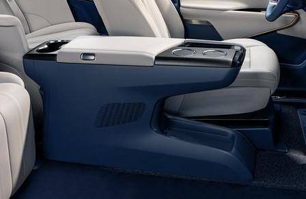 前排的中央扶手升級為島臺的設計,前后均配置了雙杯架,而且扶手以及中控臺位置都設計了相當多的儲物格,也包括了中控屏后方的儲物格(帶蓋板)。值得一提的是,扶手內部配備了冷暖箱,容量比較可觀。