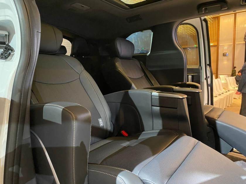 內(nèi)飾部分,是2024款賽那變化的重頭戲。例如在第二排位置,新增了兩張與埃爾法同級的一體式航空座椅,功能上具備3擋加熱通風、16點式座椅按摩以及集成了6項便攜的功能面板(座椅靠背調節(jié)、翻轉杯架、小桌板、Type-c充電接口)。在實用性和舒適性上大大提升。