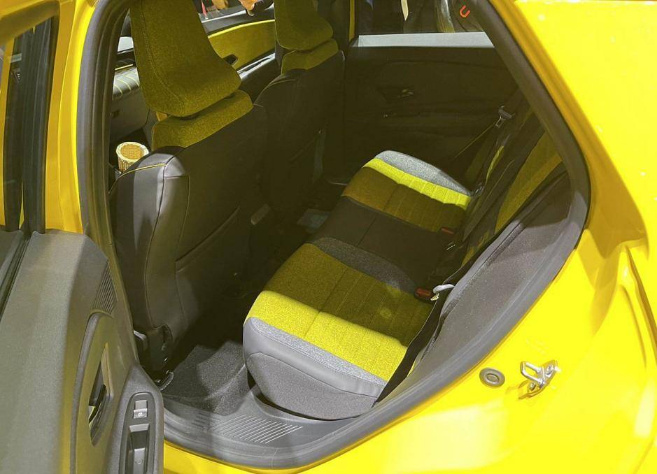 外觀方面,新車外觀設計很有意思,有一種復古的感覺,特別耐看。配色上有大黃色、亮綠色,觀感上特別抓人眼球。前臉來看,新車格柵為封閉設計,雷諾的車標位于中間,兩側有線條鏈接,形成一體式設計。燈組采用圓角矩形結構,內部是LED光源,四個角都可以點亮。發動機引擎蓋上有一塊顯示屏,充電時會顯示相關數據,滿電時顯示5,對應新車的名字。
