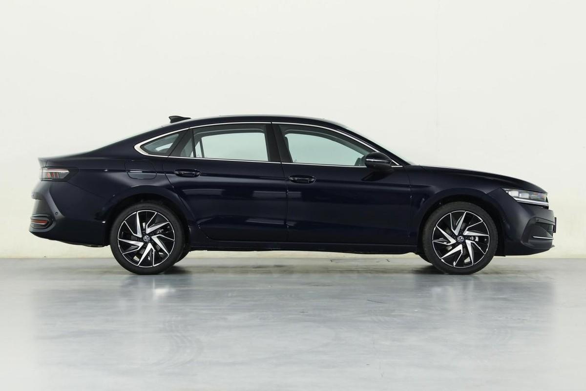從側后方向來看,邁騰的腰線還是貫穿連接了前后車門把手,線條比較尖銳而下方出現了淺溝壑,在前端消失在了前翼子板處,而在后端則進入到了尾燈的邊角位置。同時,車尾除了有一個比較軟潤的鴨尾外,中央的熏黑尾燈與下方帶黑色裝飾配件的反光帶都實現了左右貫穿,前者采用了大眾Surface LED面光源技術。同時,后保險杠不再提供裸露的排氣管,而是采用了下置式的隱藏處理,既能夠在尾箱蓋上形成比較豐富的層次,又能通過這樣的簡化處置讓車輛顯得干練一些。