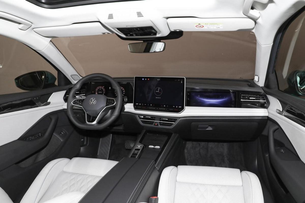 進入到駕駛艙中,邁騰提供了撞色裝飾版本可選,黑白裝飾均包含了軟包材質,這里所看到的版本中,方向盤、換擋機構以及中央扶手箱均為黑色包圍,而中控臺下擋板、車門扶手以及座椅則采用了白色皮革或軟包,觸感都是值得表揚的。此外,涉及到常觸的方向盤與座椅,還是采用了打孔工藝,能夠稍稍優化透氣散熱效果。布局方面,邁騰則帶有重心偏轉,包括15.0英寸觸控屏、空調觸控板以及中央出風口都會朝向主駕駛一側,觀察讀數與操作是比較方便的。