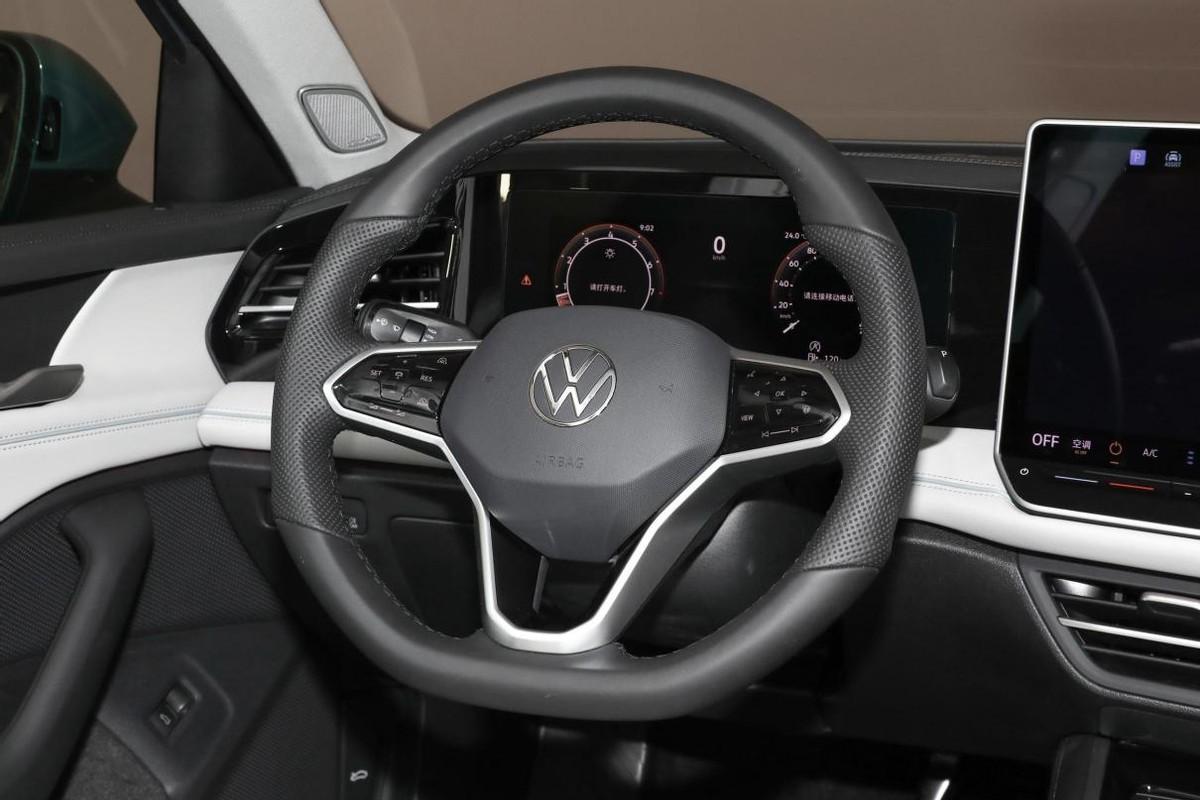 細節上我們發現,邁騰還用上了ID.純電系列相同的觸控方向盤,并在后方啟用了旋轉式電子懷擋。而包括前面提到的空調控制、出現在主駕駛左側的燈光控制等都使用了觸控設計,加上方向盤前方的10.25英寸數字儀表盤、副駕駛前方的11.6英寸娛樂觸控屏,座艙內的智能數字化氛圍還是比較足的。新一代邁騰是既用裝飾材料強調了檔次,也用布局與設計讓這里變得更前衛了。