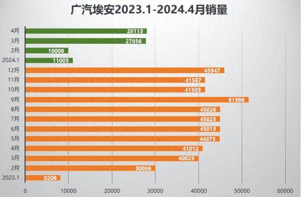 2024年,埃安為自己制定了80萬臺的銷量目標,想要完成這一目標,其銷量數據需比2023年同比增長67%,而按照前4個月的成績來看,埃安面臨著極大的挑戰,悲觀一點講,能完成一半已經是謝天謝地了。