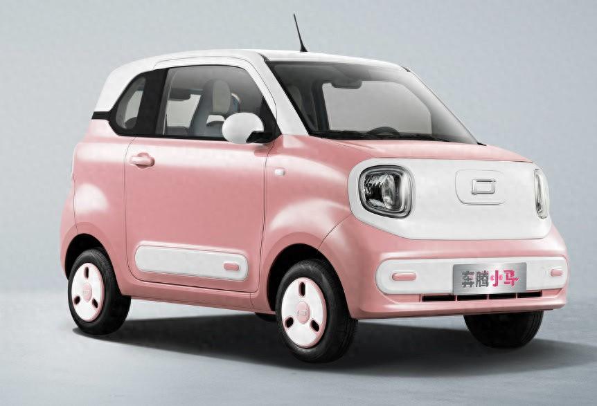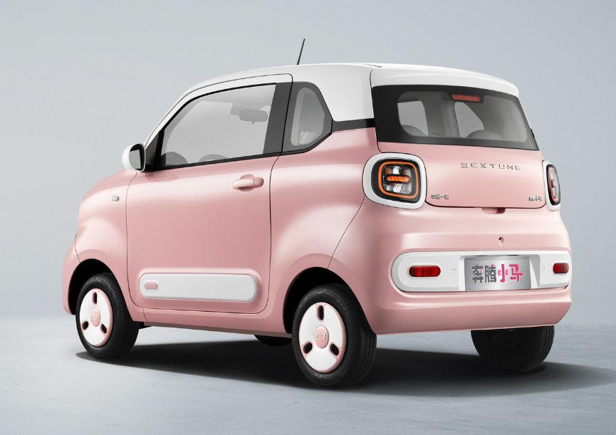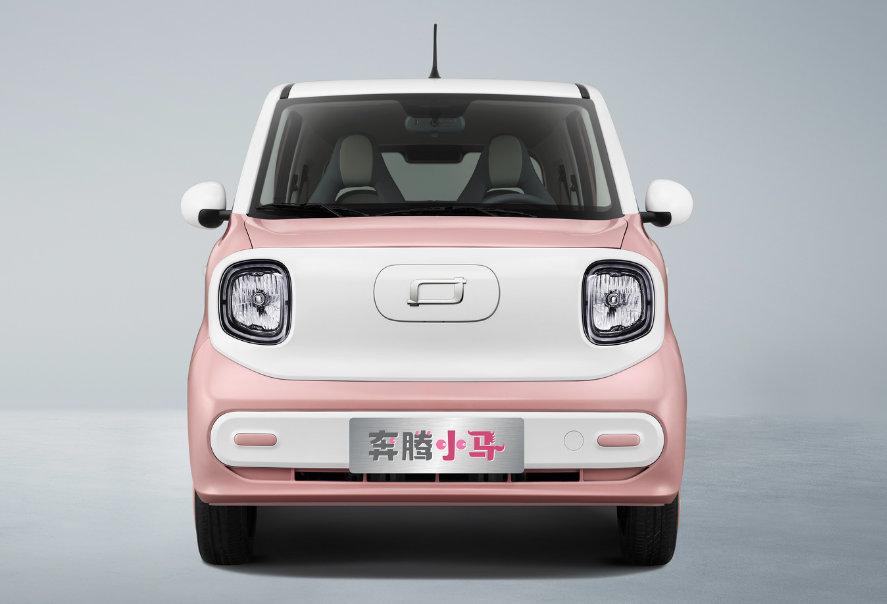 奔騰小馬的具體長寬高分別為3000×15510×1630mm,軸距2953mm。車身數據全面超越五菱宏光MINI EV,這也為該車的車內空間帶來了更多的可能性。奔騰小馬采用雙色車身設計,細節處加入了圓圓的后視鏡,同時底部設置低風阻輪圈,其造型十分可愛,輪胎選用的是萬力harmonic系列,規格為145/70 R12。