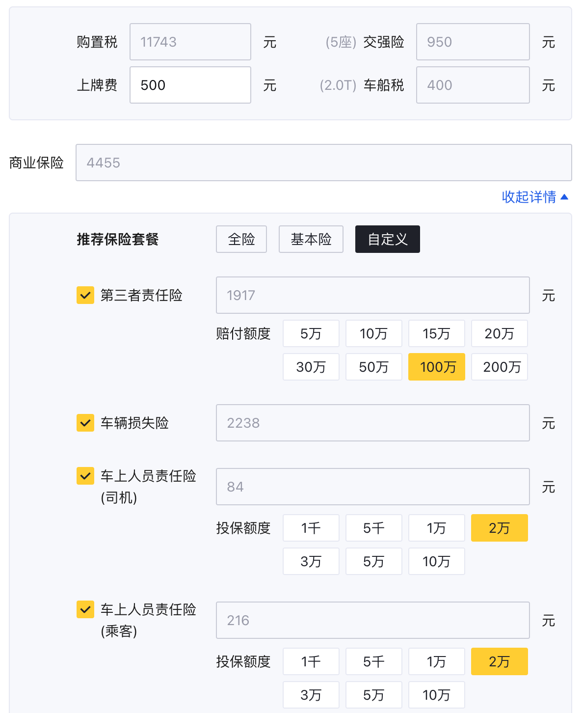 星越L的保險成本主要包括了車船稅、交強險以及商業保險,其中,車船稅為400元/年、交強險為950元/年,而商業保險則為4455元/年,其包含了100萬第三者責任險、車輛損失險以及2萬車上人員責任險(含司機/乘客),按照行業慣例,首年不出險、次年遞減10%計算,計算可得前三年保險成本約為15794元、平均每年約為5265元。