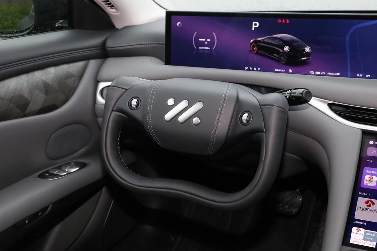 內飾方面,智己L6的中控采用了多屏幕組合設計,儀表與中控實現了26.3英寸OLED一體屏打造,下方縱置布局的10.5英寸觸控屏則為AMOLED材質,而副駕駛一側的15.5英寸OLED娛樂屏除頂配外均為選裝,艙內的科技感是肉眼可見的。同時,智己L6還可選裝半輻式設計的YAT巡航方向盤,中控會把主副駕駛艙一分為二,軟包基本覆蓋了包括中控臺下邊緣、車門板扶手、中央扶手箱等艙內常觸區域。另外,方向盤處會集成電子懷擋擋把,而座椅則實現了全系不同軟包材料的覆蓋。