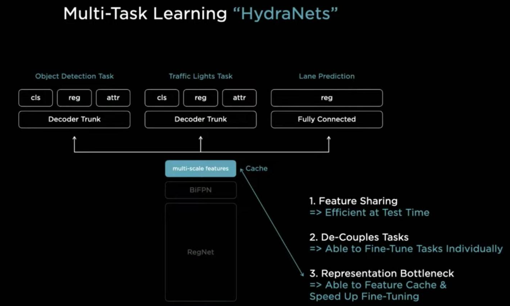FSD的答案是神經網絡,特別是其HydraNet技術。它通過神經網絡處理攝像頭獲取的圖像信息,實現對速度、3D位置、時空關系的精準判斷。FSD的硬件平臺由特斯拉自主研發,芯片采用三星14納米工藝制造,集成了多個CPU、GPU和神經處理單元,算力高達144TOPS。在軟件方面,FSD基于神經網絡的機器學習技術,通過海量數據訓練,實現對障礙物、交通參與者、交通標志的精準識別。