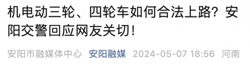不少朋友表示疑惑,電動三、四輪車到底怎么上路才不會被處罰呢?5月初,河南安陽融媒專門發文回應網友,詳細講解電動三輪、四輪車應該如何合法上路。文中明確,電動三、四輪車想要在道路上合法正常行駛,車輛、駕駛員、通行三個方面都必須符合要求。