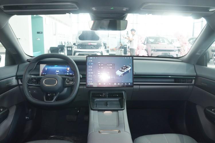 內飾上,新車整體以簡潔為主,三幅式方向盤采用了比較獨特的設計,上、下都比較扁。12.3英寸全液晶儀表顯示清晰,功能豐富。15.4英寸的中控顯示屏是整個內飾的核心,細節上擁有超窄邊框,內部配備了龍鷹一號芯片,并搭載LYNK Flyme Auto魅族車機系統,內部可實現非常豐富的功能。