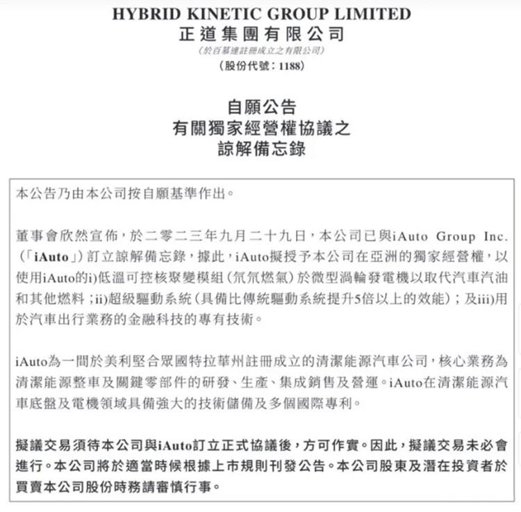對很多人來說,iAuto集團很陌生。iAuto成立于2018年,原名慧擇汽車,注冊地在美國,是一家清潔能源汽車公司。2023年9月,它曾與正道集團簽署協議,授予其在亞洲的獨家經營權,為其提供低溫可控核聚變模組技術以及用于汽車出行業務的金融科技專有技術。正道同樣是一家從事電動汽車業務的香港公司,電車開發、銷量、電池管理、電池材料開發等都是主營業務。