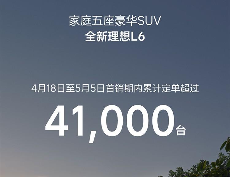 4月18日,理想L6正式上市,售價區間為24.98-27.98萬元。上市72小時訂單破萬,4月18日-5月5日期間,首銷期累計訂單超4.1萬輛。