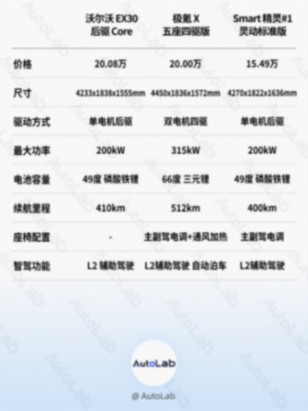 極氪 X 的性價比最高,有最強的性能和最高的智能化程度;而如果你是女性用戶,我會更推薦你買 Smart ,它的設計會更圓潤、精致一些,15.49 萬元的價格也相對最實惠。而 EX30,則留給了相信沃爾沃操控和安全的用戶。