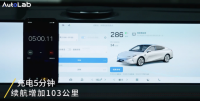 經(jīng)過我們的測試,在受到充電溫度、荷電狀態(tài)、充電樁等多方面因素影響下,充電功率能達(dá)到245千瓦。僅僅5分鐘續(xù)航就增加了103公里。