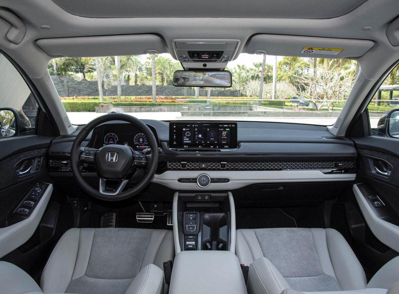 車內(nèi)就是本田最新的家族式設(shè)計風(fēng)格,就造型設(shè)計而言,全新雅閣的內(nèi)飾談不上有新意,本田的重心也不在于此,而在于提升用戶智能體驗(yàn),例如配備本田有史以來最大的12.30英寸懸浮式中控屏,并內(nèi)置最新的Honda Connect 4.0,系統(tǒng)支持Apple CarPlay和Android Auto手機(jī)互聯(lián)以及OTA升級等,在智能車機(jī)系統(tǒng)這一塊,本田可算勉強(qiáng)跟上國產(chǎn)車正常水準(zhǔn)了。