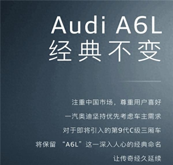 于是,奧迪聽取了經銷商和客戶的意見后,決定放棄新命名規則,回歸傳統。從 3 月 4 號登場的新一代 A6 開始,旗下車型又要重回老的命名策略了。首字母還是老樣子,A 代表轎車,Q 代表 SUV;數字用來區分車身尺寸大小,像 A6 就比 A4 大;后綴則用來表明車輛的燃料形式,TFSI 代表純燃油車,TFSIe 是插電混動,TDI 是柴油車,e-tron 是純電車。比如在奧迪 A6 車系里,汽油版就是 “A6 TFSI”,柴油版是 “A6 TDI”,純電版則是 “A6 e-tron” 。