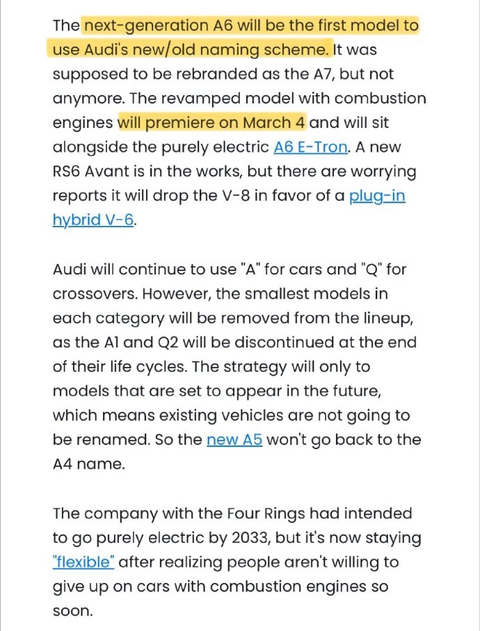 這一番折騰下來,最尷尬的就是 A4 和 A5 了。新一代奧迪 A4 的官圖都發布了,還改成了 A5,現在又要改回去,之前投入的宣傳資源,尤其是著重宣傳更名 A5 的那些,基本都白費了。