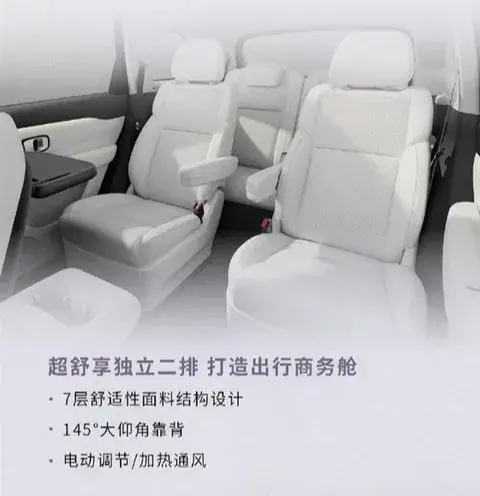 二排采用獨立座椅布局,坐墊縱向深度達502mm,靠背可實現145°大仰角,讓坐姿更自如。同時,配備通風/加熱豪華功能,更有二排座椅一鍵前移/后移功能,實現二/三排模式,為車上乘員帶來商務艙般出行體驗。