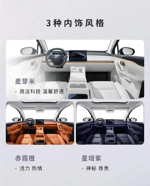 內飾沿襲了零跑家族簡潔科技風格,全新的麥芽米內飾配色,采用天然麥穗成熟的暖色調,將大自然的溫馨帶入車中,營造出一個寧靜舒適的氛圍。同時還提供了充滿活力的赤霞橙、神秘尊貴的星垣紫內飾配色,讓消費者更加喜愛。
