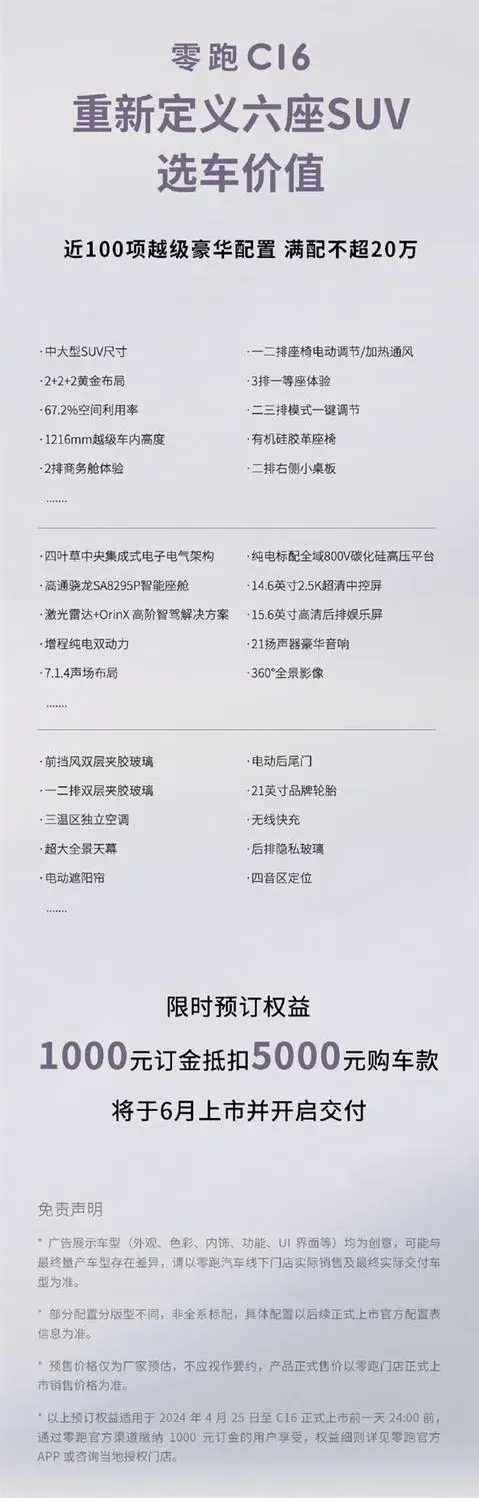 大6座“新物種 價格屠夫”預計滿配+選裝不到20萬,零跑C16將上市