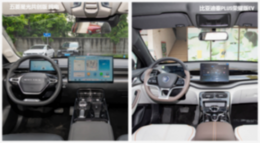 接著來看這兩款車型的配置表現,這兩款車型都配備了皮質座椅、自動空調、后排出風口、LED大燈、自動頭燈、大燈高度調節、定速巡航等功能。但是比亞迪秦PLUS榮耀版EV僅提供倒車影像、10.1英寸中控屏幕,不像五菱星光共創版 純電一樣提供360°全景影像、15.6英寸中控大屏,也沒有提供五菱星光共創版 純電具備的主駕座椅電動調節、轉向輔助燈、全車車窗一鍵升降/車窗防夾手、雨量感應式雨刮等配置。