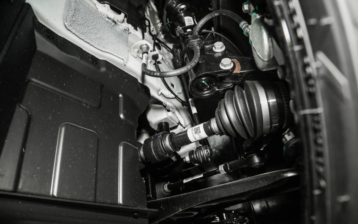 在懸掛的設(shè)計上,前部為傳統(tǒng)的麥弗遜結(jié)構(gòu),結(jié)構(gòu)簡單,占用空間小,成本也低,全部都是鋼制,沒有看到鋁合金材質(zhì)的應(yīng)用,在前懸掛的半軸上,吉利安裝了橡膠阻尼塊,可以減少傳動過程中的噪音和震動傳遞,駕駛時車內(nèi)更安靜。