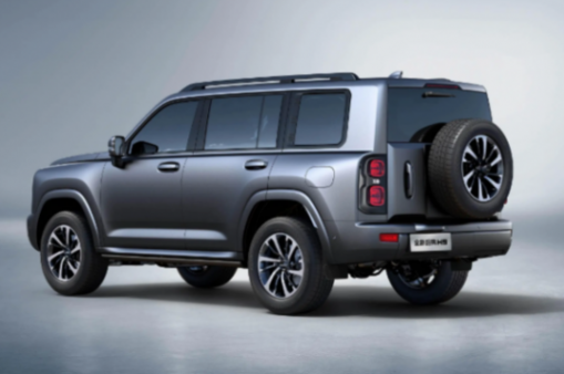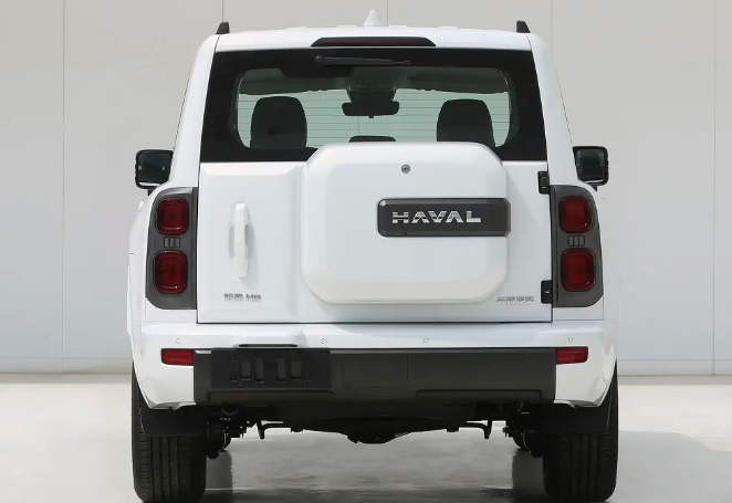 而車尾也跟猛龍的造型一樣,方正直立。左右兩側是方塊形的LED尾燈,亮點后辨識度不錯。尾部帶有外掛式的備胎,只是不知道是不是選配。下方位置可以看到拖掛的預留位置和接電口,說明全新哈弗H9是具備拖車資質的。