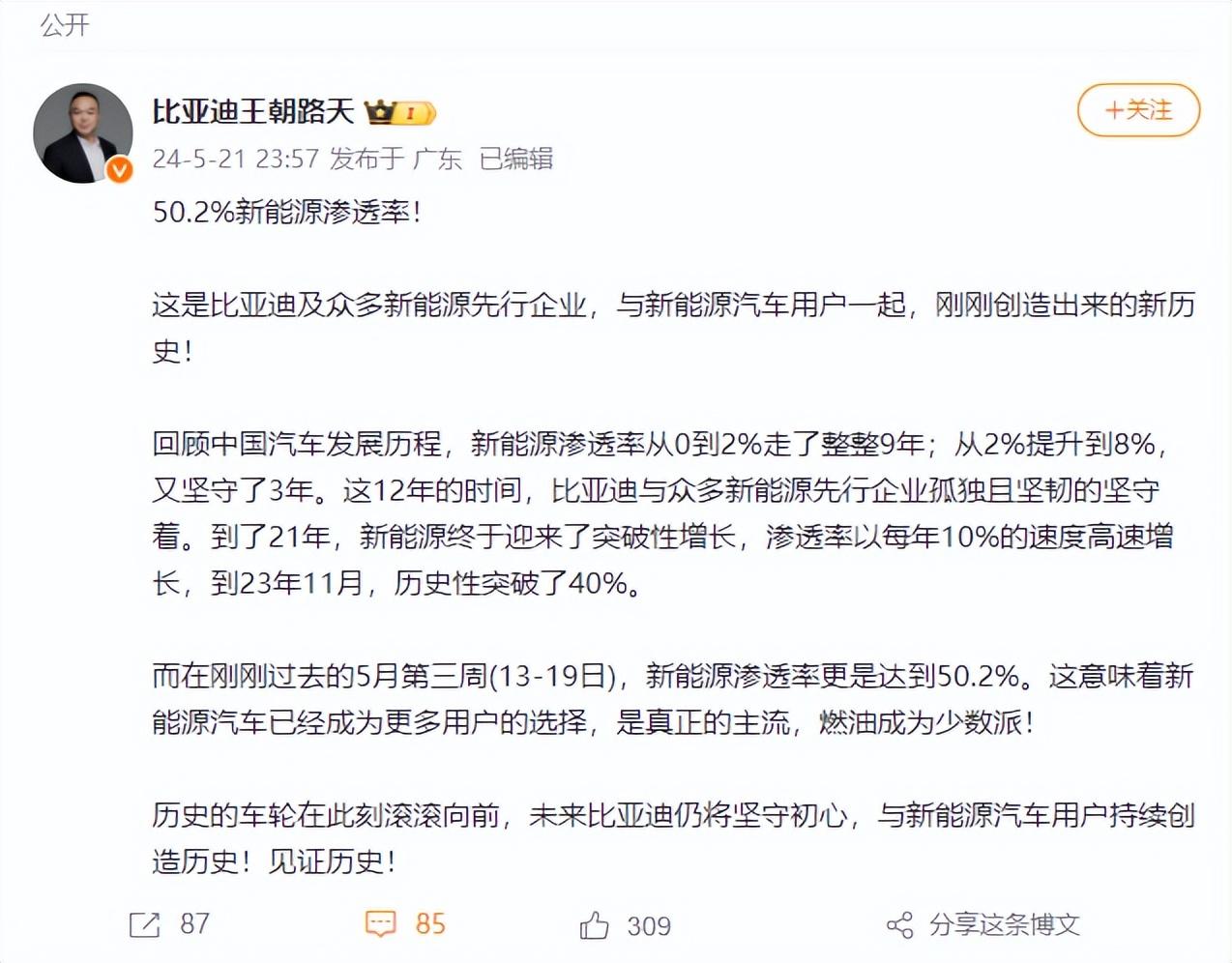 總結:在今年3月份的中國電動汽車百人論壇上,王傳福曾預測新能源汽車滲透率很快突破50%,而這一速度明顯超過預期,從零售再到終端上險,這些都意味著新能源車將很快取代燃油車成為市場主流。所以各位想要買新車,不用糾結怎么選,想要主流就選新能源。