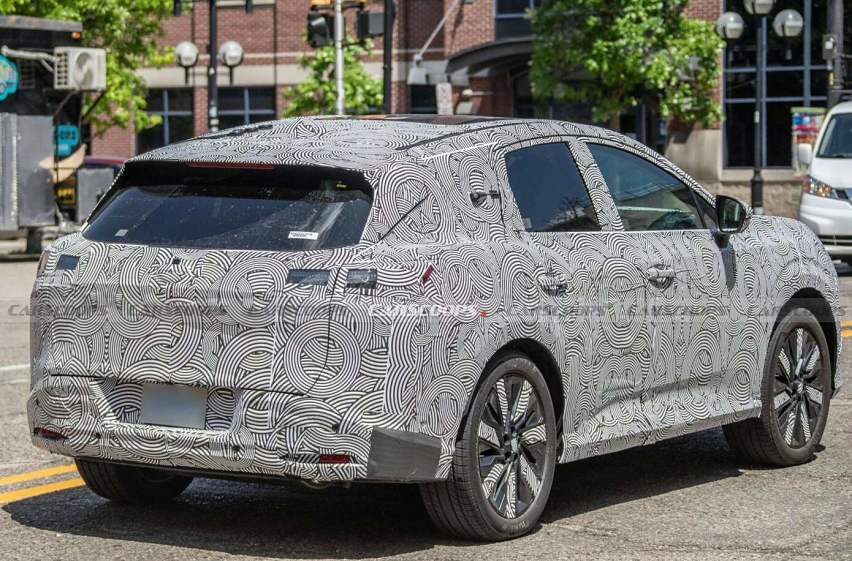 車側還看不出來太多的線條,但可以看到車頂下滑明顯,看上去線條非常流暢。另外,新車似乎還采用了低風阻輪圈,不知道量產車是否會如此。尾部能看到的內容不多,可以發現牌照框被移到了后保險杠處,預計尾部主打一個簡潔。另外,尾燈預計會采用貫穿式的設計。