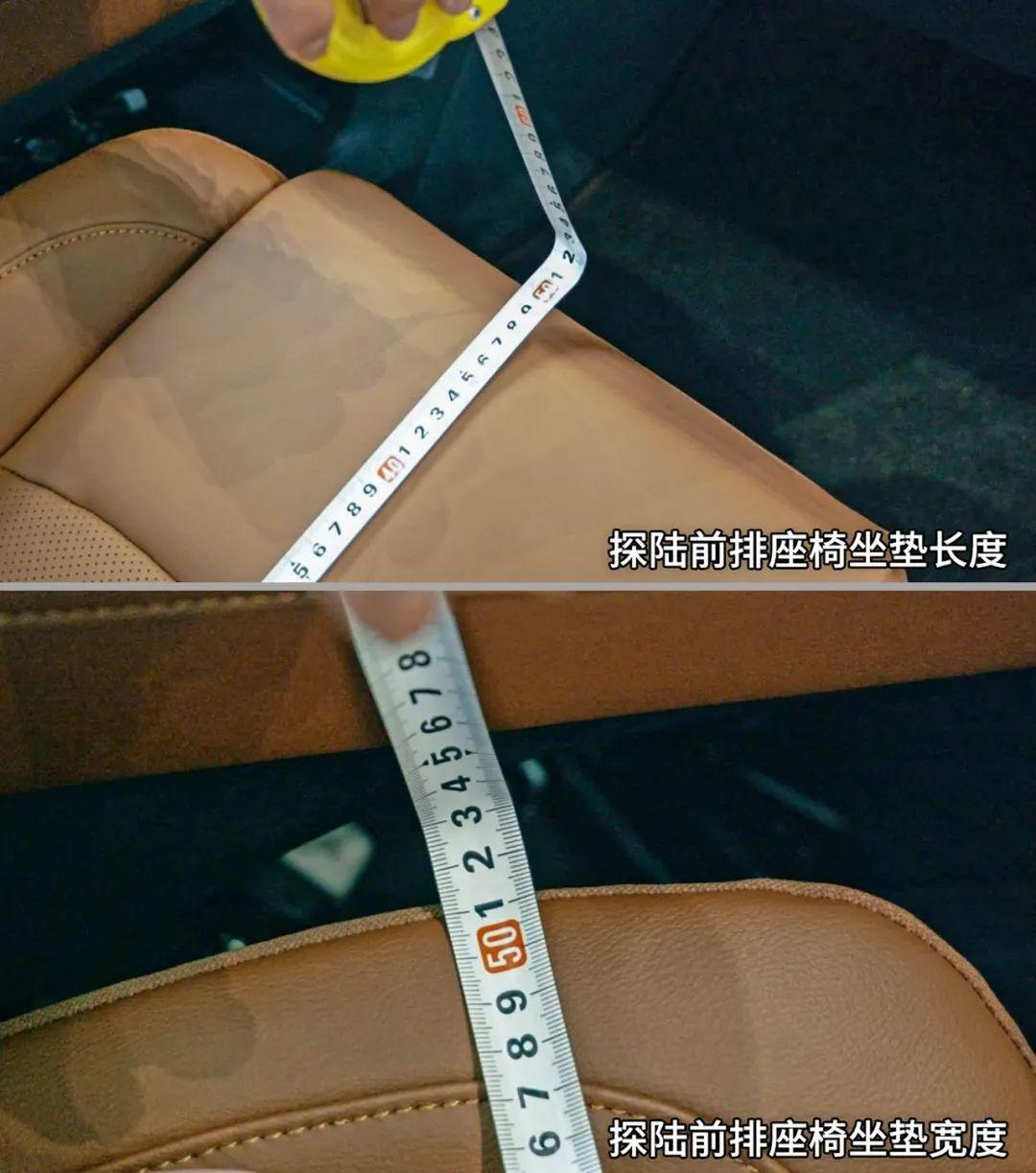 探陸作為“沙發廠”的車型,座椅自然是它的保留節目。同一價格,探陸有6座/7座可選,比漢蘭達要靈活。同時探陸配真皮座椅,座椅寬大厚實,主副駕均配有座椅調節、加熱功能。實測探陸前排座椅坐墊長度為50cm,寬度為51cm。