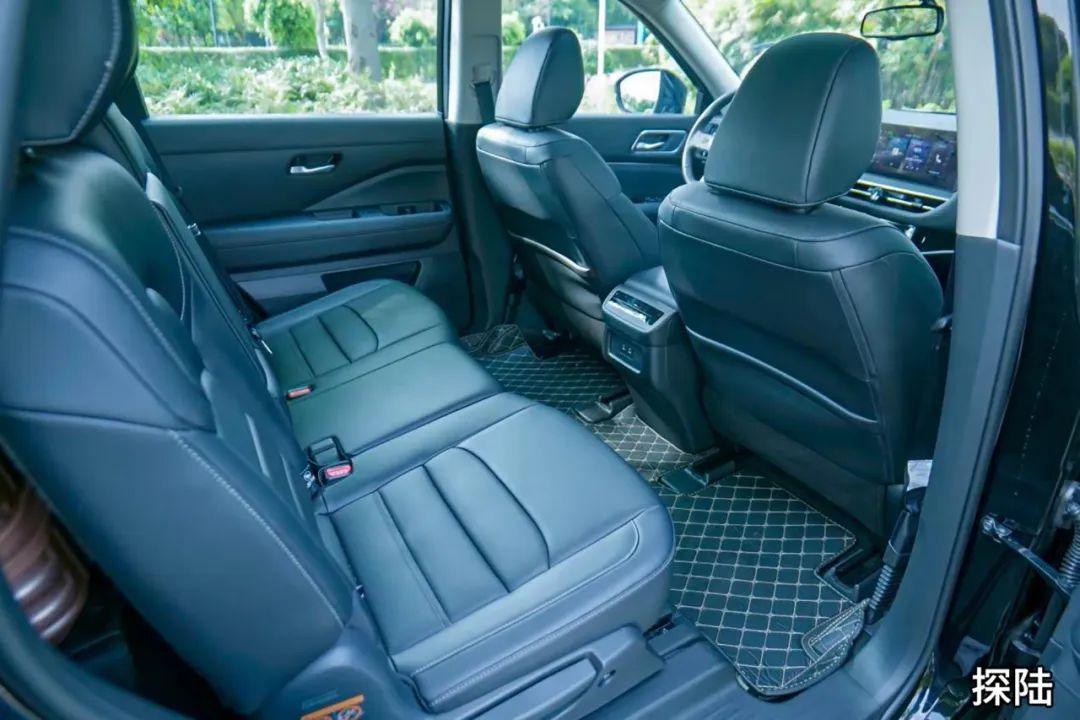 實測探陸第二排腿部空間大約有兩拳半左右,比較寬敞,翹二郎腿、“葛優躺”都不在話下。座椅靠背和第一排一樣寬大厚實,座椅角度有5檔可調,無論你的身材是高矮胖瘦,都能給你安排得妥妥的。