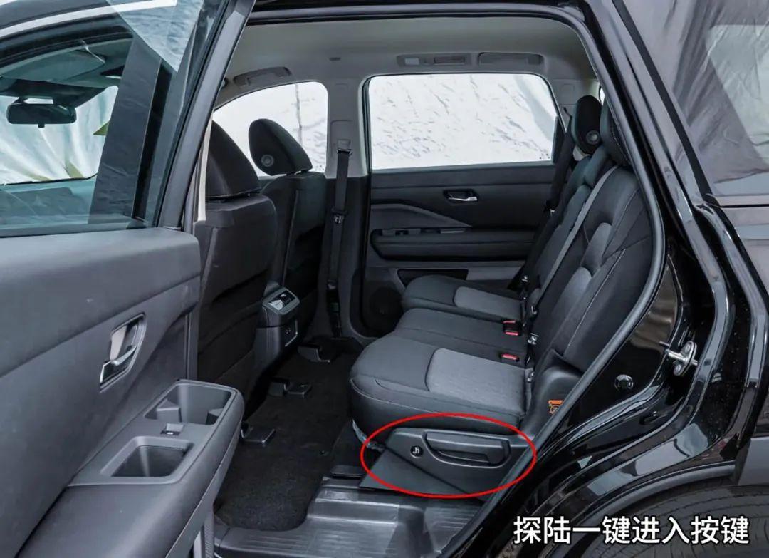 值得一提的是,探陸在第二排靠背后方和坐墊側面都配備了一鍵進入的按鍵,只需按一下就能將座椅自動前移放倒,很方便。另外,探陸6座版還提供寬度達到238mm的中央通道,稍稍側身即可輕松從第二排進入第三排。