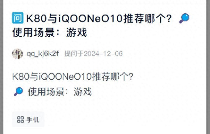最近我們在后臺收到了用問,使用場景主要是游戲,紅米K80和iQOO Neo10怎么選?今天我們給大家統一解答一下。