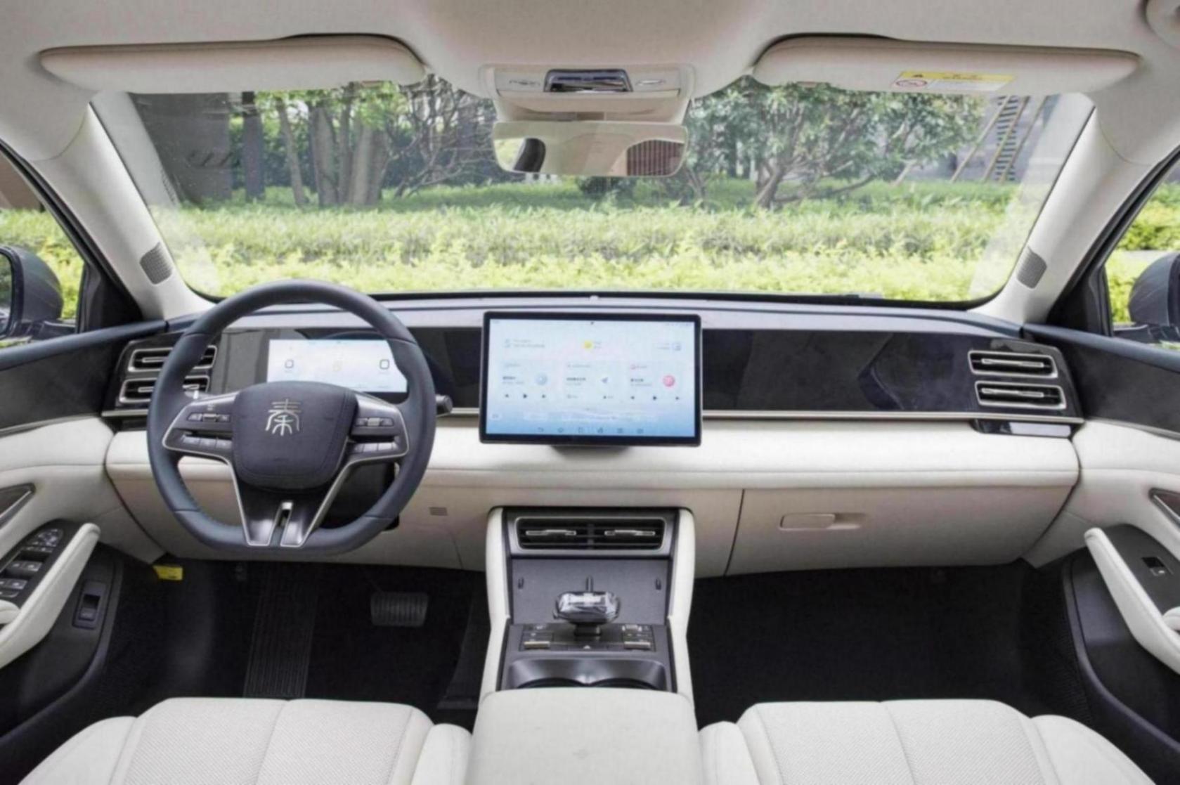 內飾方面,車內的布局采用了比較簡潔的設計,配備了全新造型的多功能平底方向盤。同時還配備了8.8英寸的液晶組合儀表和10.1英寸的懸浮式中控屏,并內置了DiLink車機系統,支持手機APP遠程控制車輛、NFC鑰匙、車聯網、OTA升級和語言識別控制系統等等。