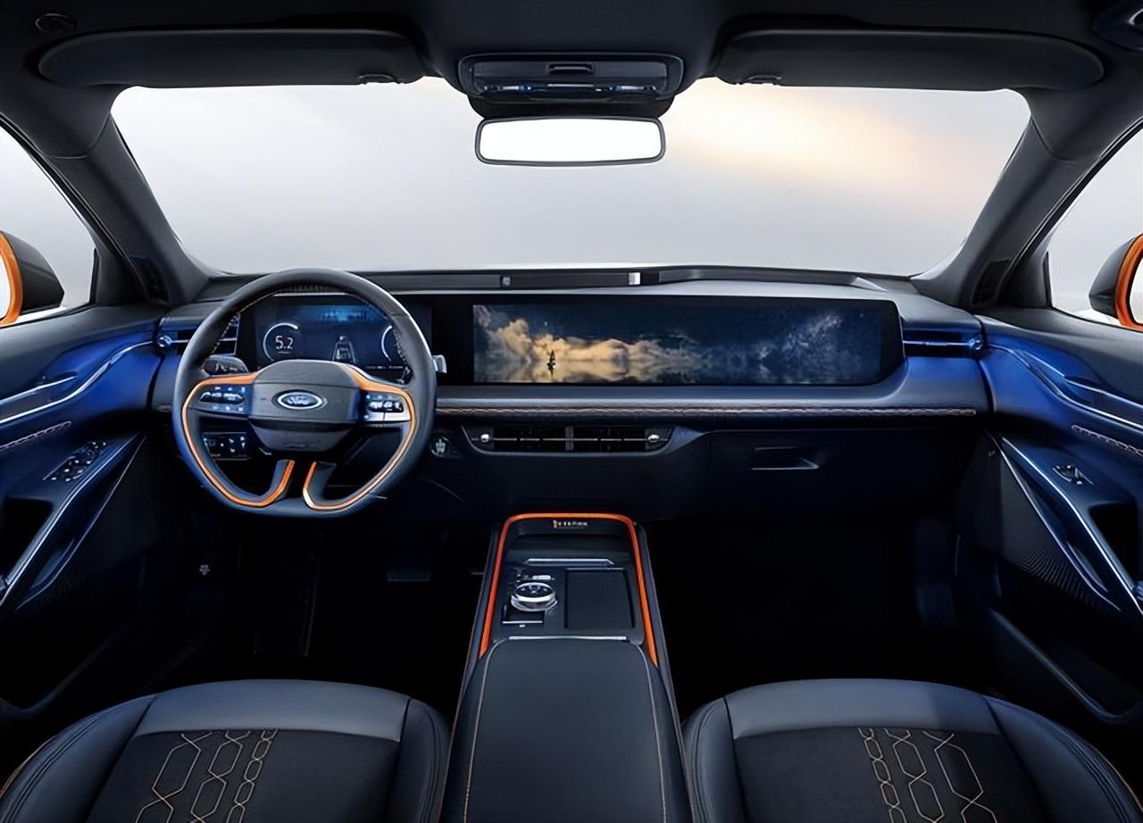 內飾摒棄了中型車一貫成熟穩重的設計理念,變得更加激進、運動。中控臺采用了偏向駕駛員一側的設計,秉承以駕駛者為中心的設計理念打造。懸浮式的中控臺配備了大尺寸一體式屏幕,屏幕寬1.1米,采用12.3寸數字儀表+27寸4k中控屏,幾乎看不到物理按鍵,這種前衛、科幻的設計似乎讓消費者提前感受到了未來汽車的魅力。車機系統搭載了SYNC 2.0系統,操作系統和功能得到極大豐富,并融入了時下流行的APP,操作更簡單、快捷。除此之外,此次OTA還包括新增3項語音指令(后視鏡加熱、駕駛模式切換、360度影像開關);媒體投射優化(投屏時可自由選擇使用車機、手機流量);賬號登錄優化(優化人臉識別登錄體驗)。
