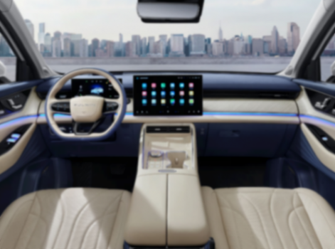進入車內,同樣是目前比較流行的簡潔雙屏設計,15.6英寸的懸浮式中控屏尺寸足夠大,內置8155芯片,支持5G千兆以太網,也是當下比較主流的配置了。另外像當下許多新車都會有的全景天窗、7安全氣囊(標配遠端氣囊)、540度全景影像、256色氛圍燈、50w手機無線快充、高清HUD抬頭顯示系統以及L2+級輔助駕駛功能都沒有落下。這臺車還配備了帶頭枕音響的SONY 14揚環繞音響以及ENC主動降噪功能,畢竟是中大型SUV,排面得拉起來。