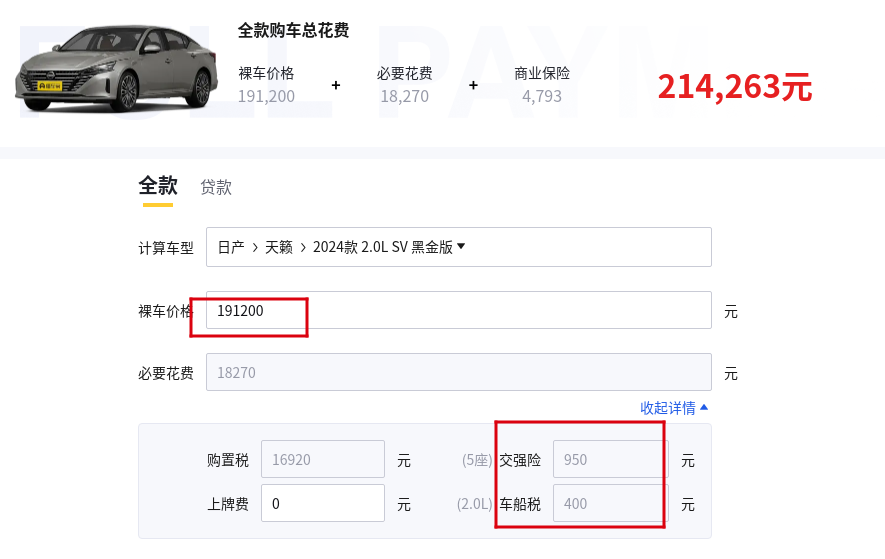 接下來,我們保險費用方面,為了統(tǒng)一標(biāo)準(zhǔn)進(jìn)行計算,我們按照這款車19.12萬元的價格為計算標(biāo)準(zhǔn),同時打開懂車帝,找到具體車型后,通過購車計算的數(shù)據(jù)為參考依據(jù)。