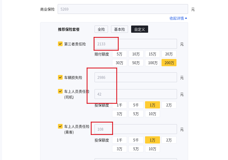接下來,我們在來看一看這款車的保險費用,一般情況下我們通常按照商業(yè)險和交強(qiáng)險兩類進(jìn)行計算,其中我們按照商業(yè)險三者200萬,價格為2133元進(jìn)行計算,車輛損失險為2986元,車上人員責(zé)任險(司機(jī)+乘客)賠付額為1萬來計算共150元,那么這款車的商業(yè)保險費用共5269元,再加上交強(qiáng)險950元,車船稅400元。一共為6619元。需要注意的是,由于保險購買項目和政策不同,最終的保險價格還是需要以實際價格為準(zhǔn)。