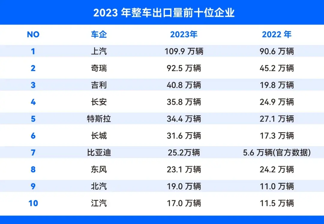 這個數(shù)據(jù)堪稱炸裂,汽車出口銷量大增的背后是中國自主品牌在海外的積極拓展和布局。數(shù)據(jù)顯示,目前有超過30個自主品牌向海外出口汽車產(chǎn)品。而出口銷量前五大品牌占比超四成,以上汽、奇瑞、比亞迪、長城汽車為代表的頭部車企在海外已站穩(wěn)腳跟,并在多個重要市場建有生產(chǎn)基地,通過本地化生產(chǎn)的方式進一步提高市占率。