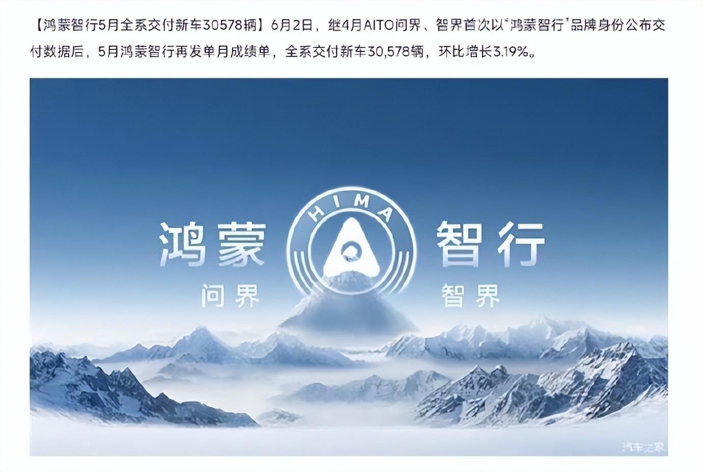 鴻蒙智行是華為旗下的智選車品牌,擁有問界、智界、享界、傲界四大搭檔組合,目前市場上有拿真車出來開賣的就問界和智界,5月份銷量30578輛,環比增長3%。