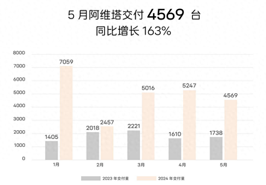 2024年6月2日,阿維塔科技宣布,5月份其汽車交付量達到4569臺,同比增長163%。這一增長顯示出阿維塔科技在新能源汽車市場的強勁發展勢頭。