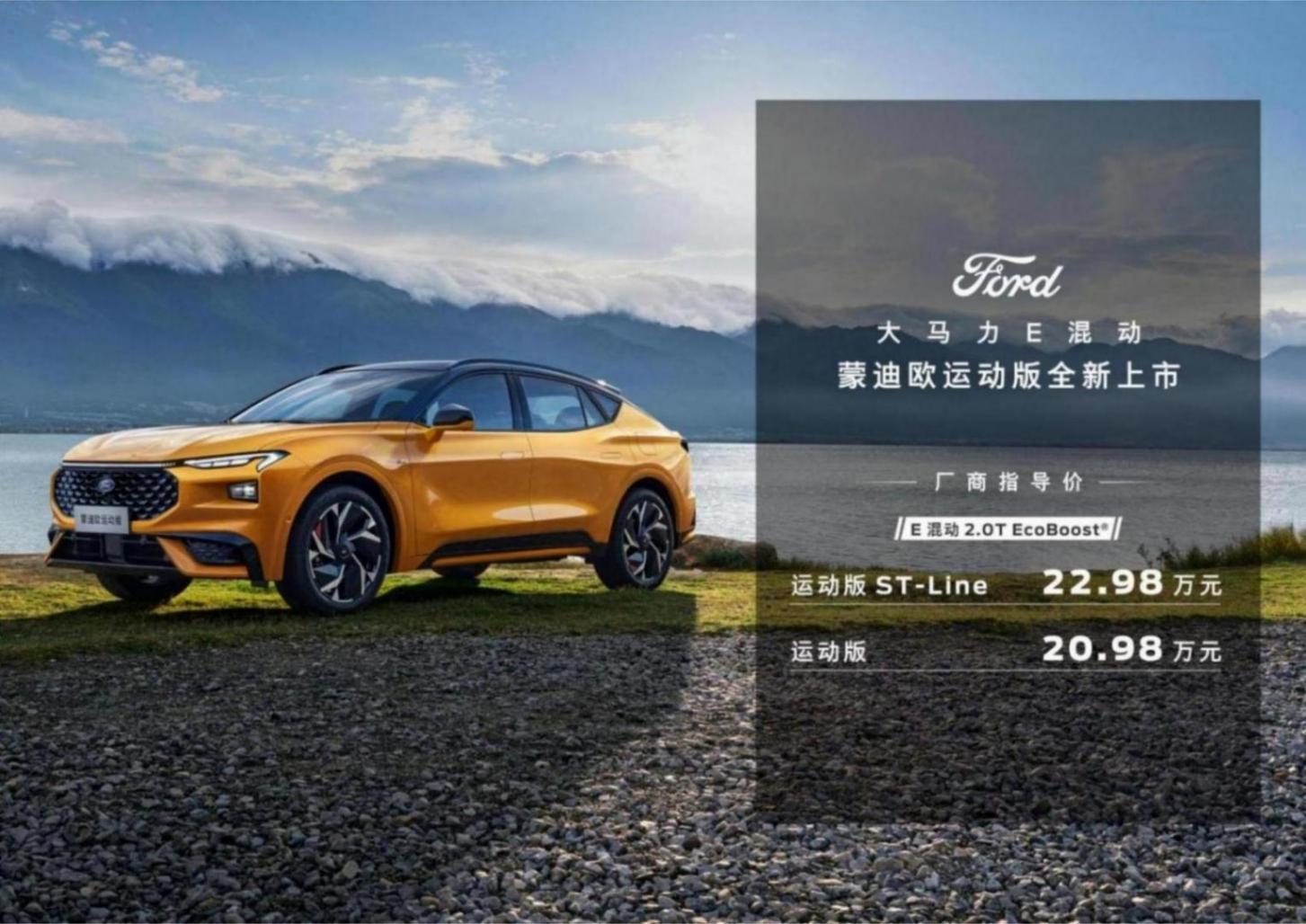 福特蒙迪歐運動版正式上市,推出運動版和運動版 ST-Line共2款車型,售價分別為20.98萬元和22.98萬元。蒙迪歐運動版與蒙迪歐4門版車型源自同一平臺打造,并采用極具視覺沖擊力的外觀設計語言,還配備廣域高清巨屏、Co-pilot 360TM 輔助安全系統等配置。動力方面,新車搭載大馬力E混動系統,綜合輸出功率227千瓦,綜合續航里程達915公里。