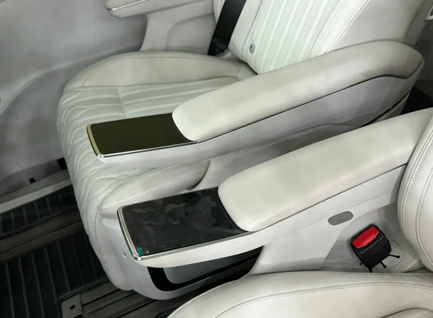 除此之外,例如精致的電子檔桿,大面積開放式的儲物格杯架手機無線充電面板,運動的平底方向盤等細節都不會太大變化,撞色內飾也提供了更加豐富的選擇,驍龍8155車機芯片L2+級輔助系統都在高配得到了配置。當然對于一款高端商務MPV第2排才是最關鍵的表現,無論是高低配都設計了中央岔開通道的雙獨立座椅,區別只是內側扶手高配車型有著獨立的觸摸屏用來控制通風加熱按摩座椅調節等多種配置,提供了更加舒適的體驗。