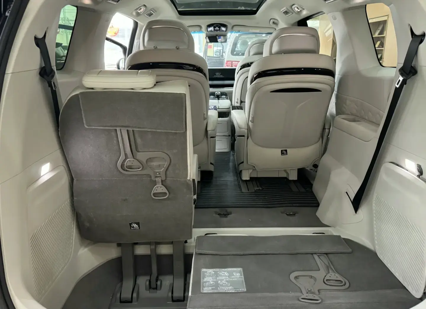 其他例如小桌板等配置也不會缺席,滿足了商務和家庭的需求,第三排除了較為充裕的腿部空間表現之外,座椅還可以額外下沉至后備箱處,形成底板完全平直的儲物空間,也堪稱一大亮點,極限放倒后的容積可達到夸張的2792升,有著領先的水平。
