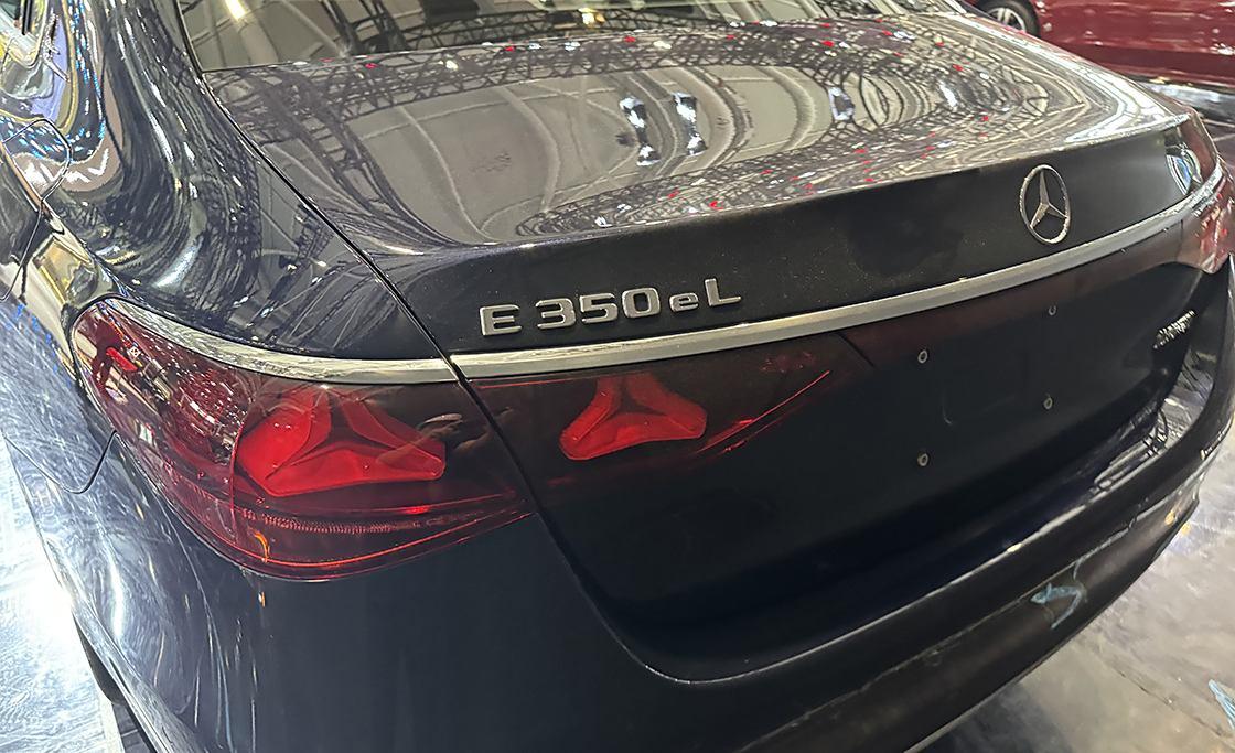 車尾部分貫穿式的尾燈造型,特殊三叉星的光源有著極強的辨識度,貫穿式的鍍鉻條,以及后保險杠部分還有的貫穿式的鍍鉻條,讓整車的風格形成統一。尾箱蓋左上角的E350 eL彰顯了車型的身份。而在右側尾燈下方的充電接口也顯示了混動的構架。在內飾部分,雙大尺寸液晶屏鑲嵌于玻璃面板之下,配合懸浮式液晶儀表盤和Hud抬頭顯示組成聯動,也有著不錯的科技感。