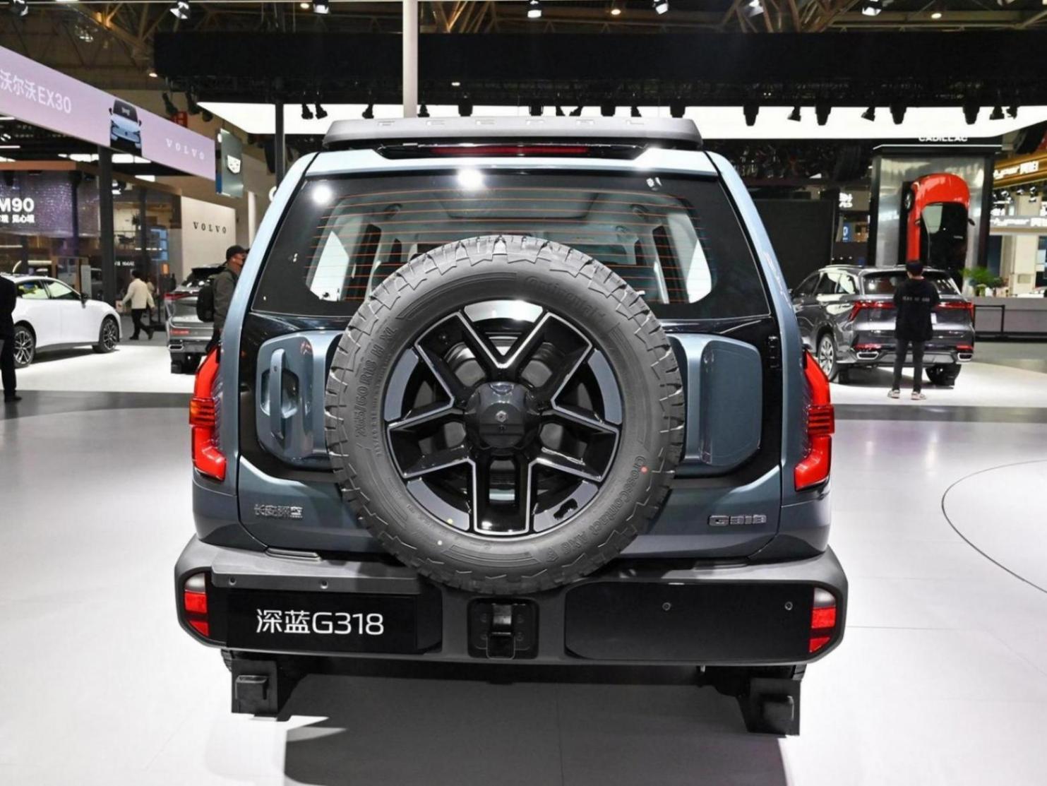大尺寸輪轂,AT胎等元素不會缺席,車頂還有著厚實的行李架,增強了硬派感。在車尾部分,全尺寸的備胎顯示了硬派的基因,鑲嵌于懸浮式的后備箱設計,令人眼前一亮,C字形的紅色尾燈不算高調,后保險杠部分有著燈組與之對應,整體還是走相對簡潔的設計,較大的離去角也提供了不錯的通過性能。