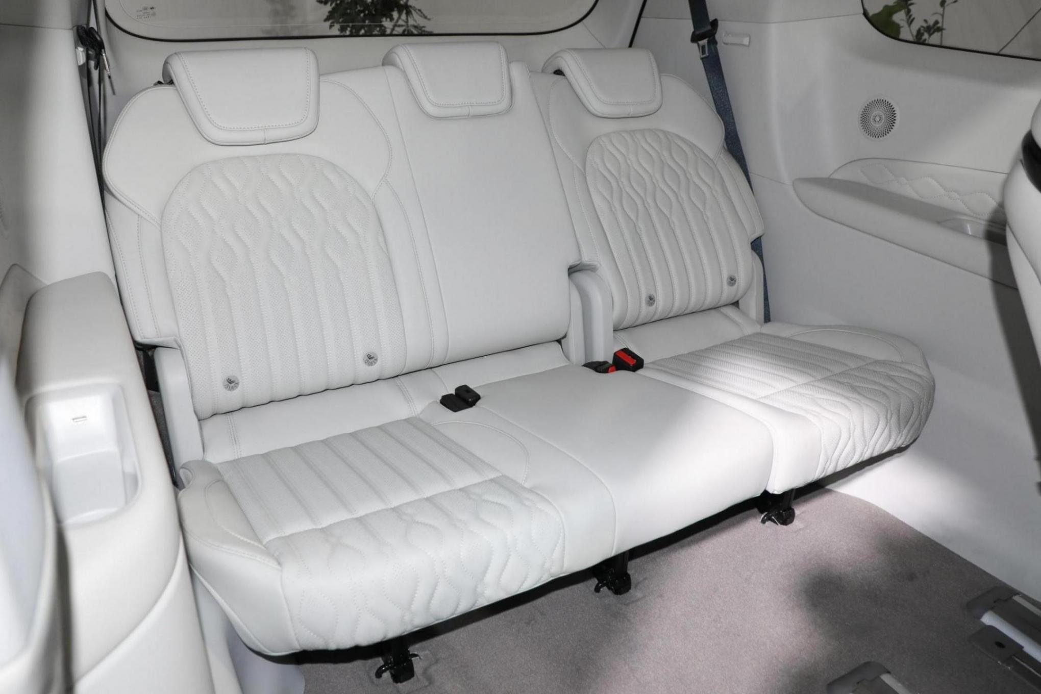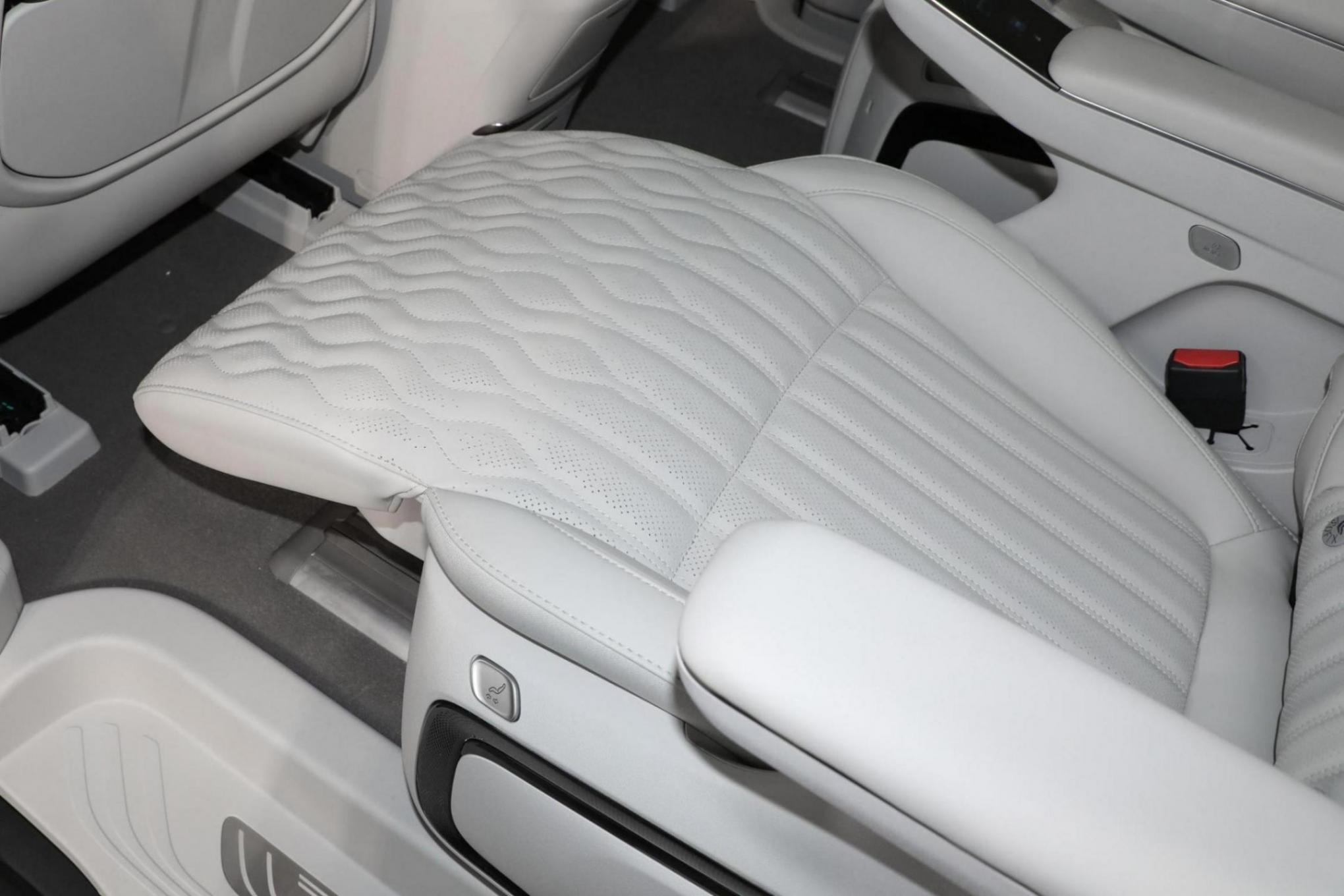 在內(nèi)飾部分,由于是較高配置的車型,新車上來就是高配的三大尺寸懸浮式液晶屏設(shè)計理念,科技感達(dá)到了領(lǐng)先的水平,環(huán)抱的中控臺面有著層次感豐富的布局,隨處可見的鍍鉻木紋啞光金屬等質(zhì)感面板進(jìn)行貫穿,加上撞色內(nèi)飾配色再度增強了豪華的屬性。扶手箱前端區(qū)域則有著大量實體按鍵和實體的電子檔桿,提升了實用的屬性。在后排新車也直接就是高配第2排獨立座椅有著自帶的內(nèi)側(cè)扶手觸摸控制屏和更加扎實的版型體驗,通風(fēng)加熱按摩腿托豐富角度可調(diào)都不會缺席,填充也相當(dāng)?shù)暮駥崳峁┝顺錾某俗w驗。