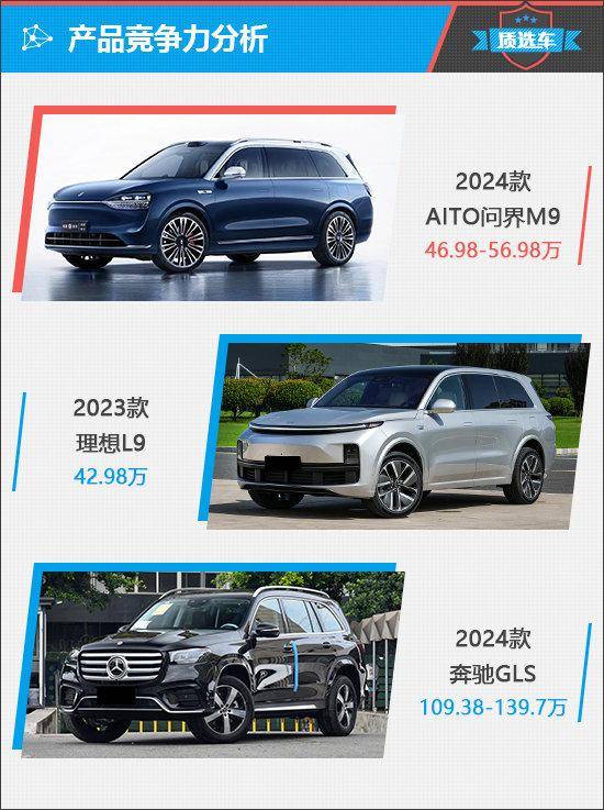 通過市場對比不難發現,能夠同時提供增程和純電兩種能源形式的大型SUV,除了問界M9外,還有一位猛士917選手,不過考慮到受眾群體,因此沒有將其列為競品。綜合考慮來看,定位家用的理想L9無疑是最直接的競爭對手之一。奔馳GLS雖然價格高昂,但考慮到華為自信滿滿,且話已出口,所以我們就將其列為競爭對手,看看問界M9能否與之抗衡。