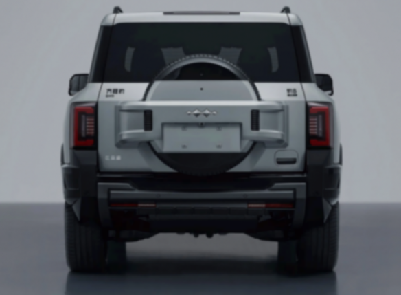 在車尾部分,背書包式備胎罩融入精致的車身同色護板,看起來更加高級。“C”字形尾燈組縱向鑲嵌在尾門兩側(cè),與前大燈相呼應,后包圍有著復雜的多層方形裝飾,繼續(xù)營造硬派風格。